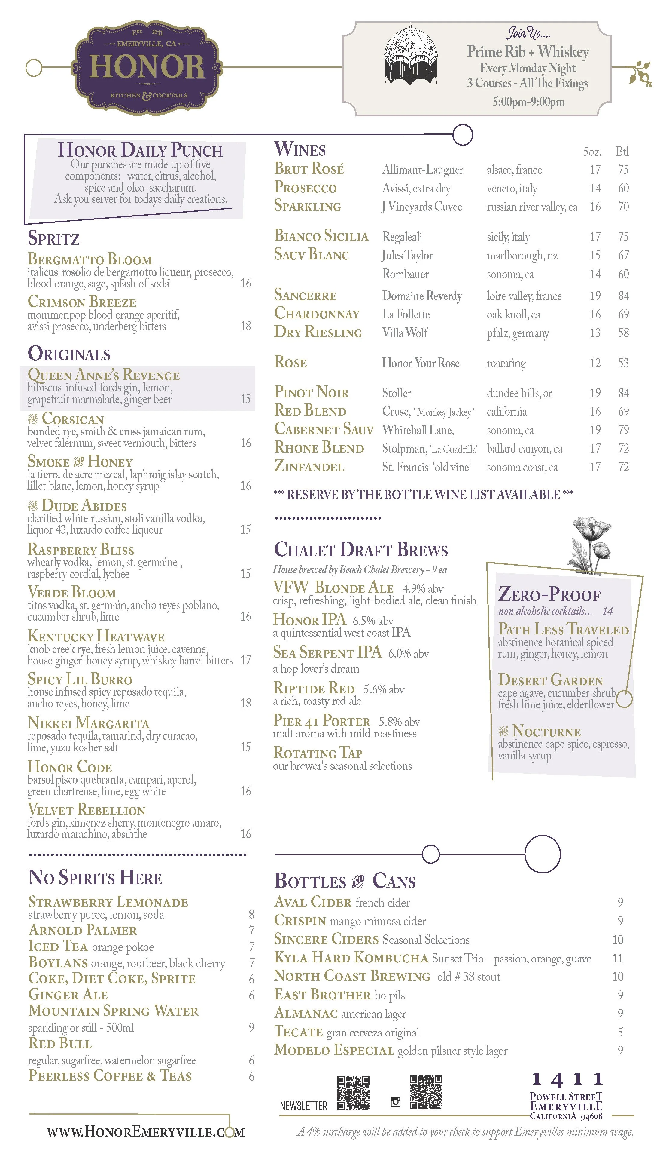 Happy Hour: 3:30pm-6:00pm and 9-Close Daily (lounge and outdoor seating only)