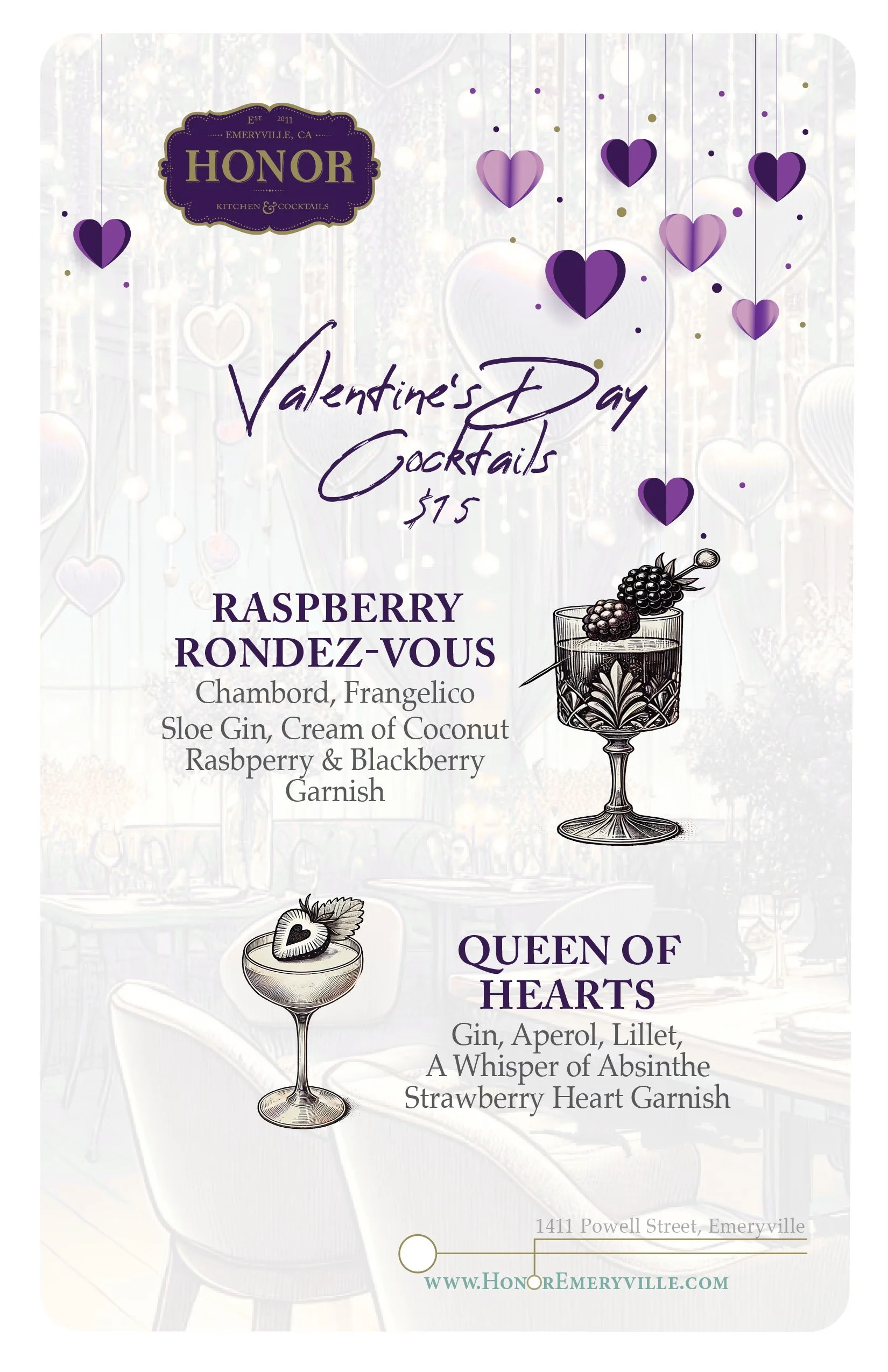 Prix fixe menu served Saturday February 14th. Regular menu also available.